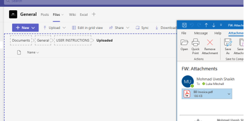 2. Straight from file Explorer/Outlook, you can click and drag files directly into the Teams window.