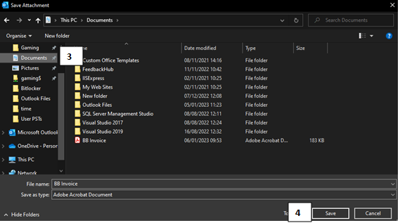 3. In the Save As window that opens, select documents to save locally. If needed, edit file name and type in respective fields. Select “Save”.